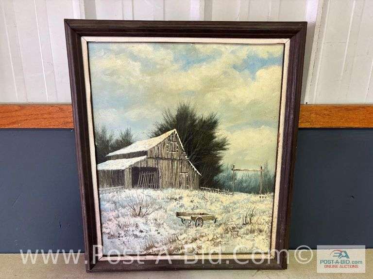 Rustic Oil Painting, 24"x28" Artist Unknown.