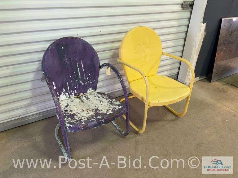 (2) Vintage Metal Purple And Yellow Chairs.