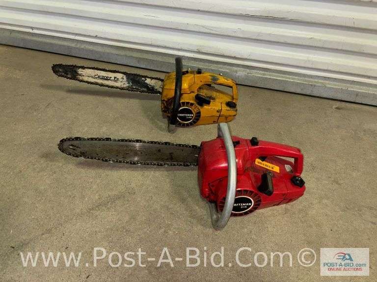 Craftsman 2.1 Gas Chainsaw With Craftsman 2.1 Gas Chainsaw, Owner Stated "Red One Ran Last Fall, But Wont Stay Running, Yellow One Last 5 Year Ago".