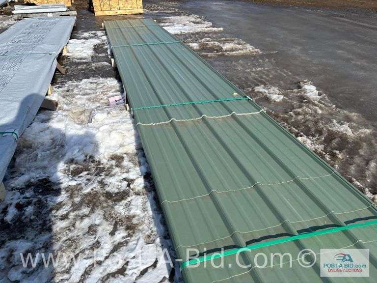 Classic Rib 36 29 Gauge GR80 CF45 Patina Green Sheet Metal, Approx. 4 At 19 1/2' Long, 4 At 18' Long, 4 At 16 1/2' Long, 4 At 15' Long, 4 At 13 1/2' Long, 4 At 12' Long, 4 At 10' Long, 15 At 7'7" Long, Bidder Is Responsible To Inpsect Quantity, Quality And Sizes.